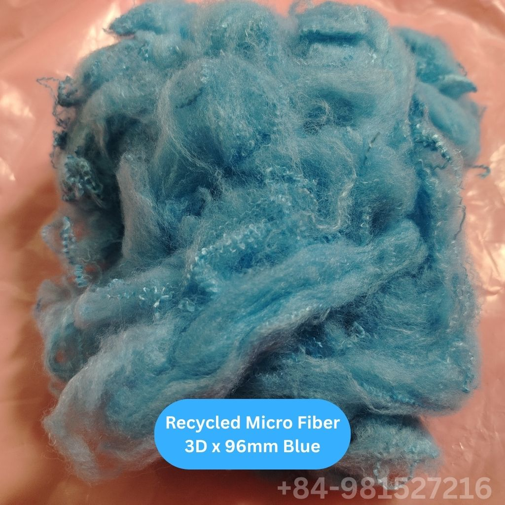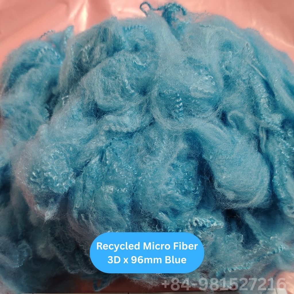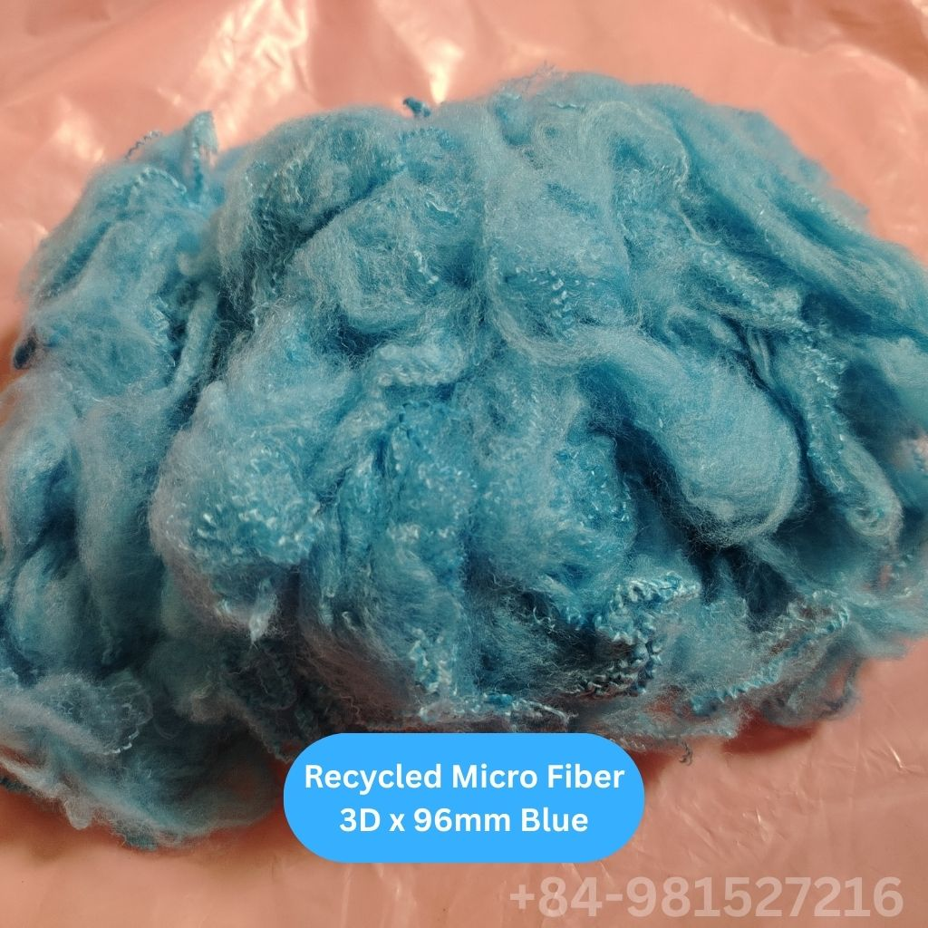 Recycled Micro Fiber 3D 96mm is a premium polyester microfiber produced from recycled materials through advanced fiber processing technology. With a fineness of 3.0 denier and a cut length of 96mm, this fiber provides an optimal balance between softness, strength, and performance.
